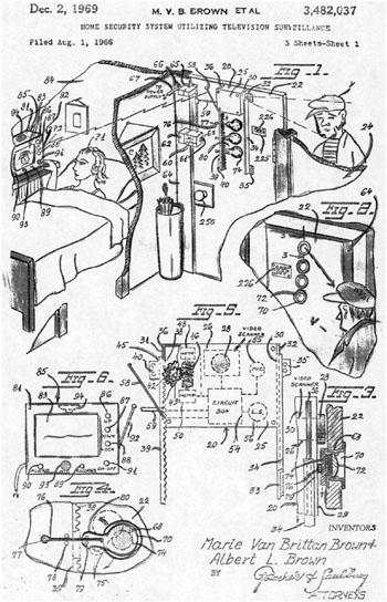 The patent application was filed on August 1,1966 under the names of Marie Van Brittan Brown and Albert L. Brown, both of 151-58 135th Avenue, Jamaica, New York. The application states that the invention being described is “a video and audio security system for a house under control of the occupant thereof. Occupant can see who is at the door…” An audio system permits the occupant to converse with the person at the door.In the mid-1960s no one was creating home surveillance systems. Therefore, Marie and Albert were applying for a patent on what would truly be a “first.” In citing the patents that their application relied upon in order to create the system, the Browns noted only three previous patents: the invention of the television system by Edward D. Phinney (approved February 7, 1939), an identification system created by Thomas J. Reardon (approved November 24, 1959), and a remotely-operated control of the scanning system (approved June 28, 1966).